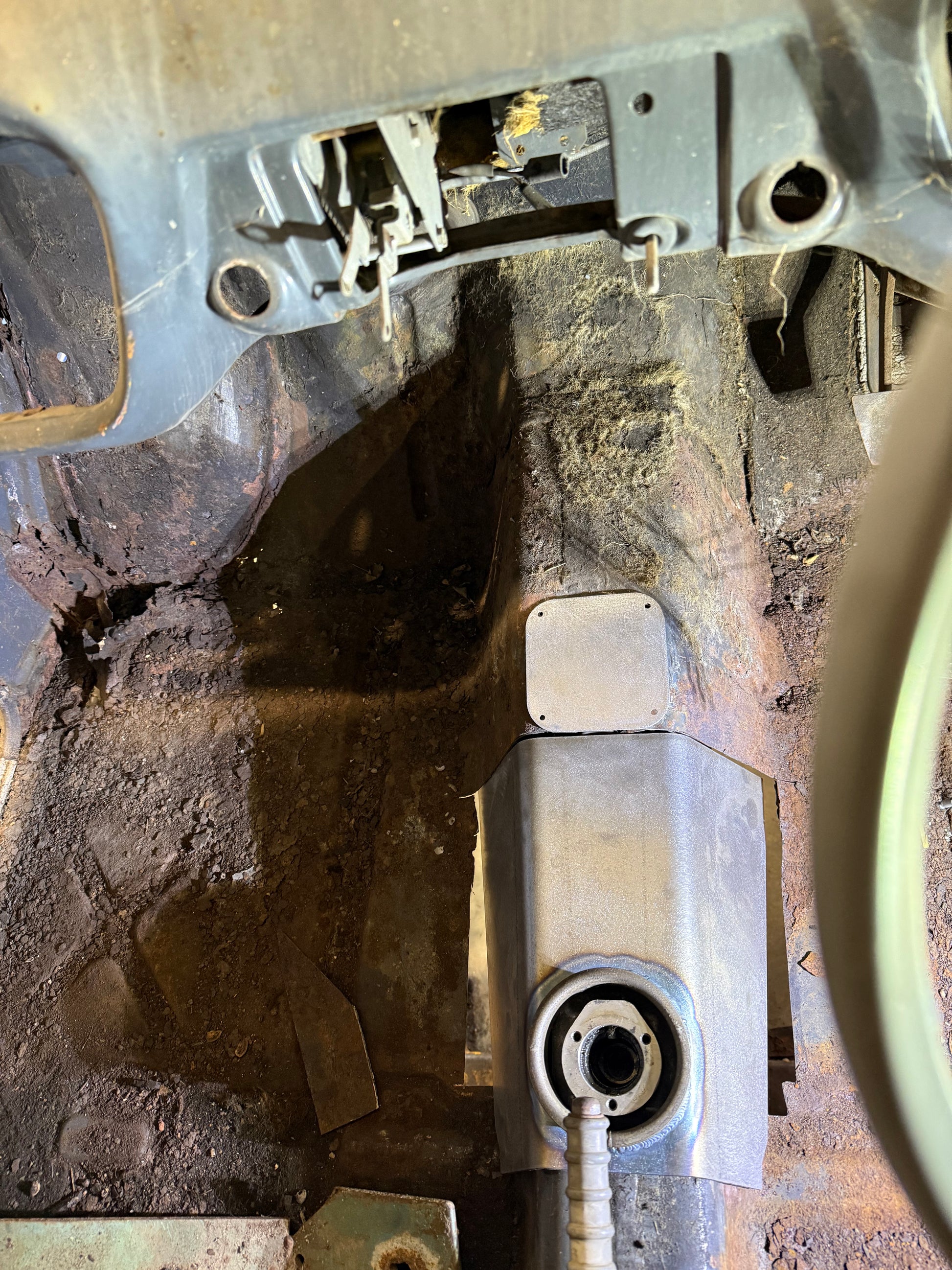 Gearstick hole blanking plate made from 1.5mm mild steel. The plate has 4 holes that pick up the original gaiter fixing holes in the top of the tunnel.